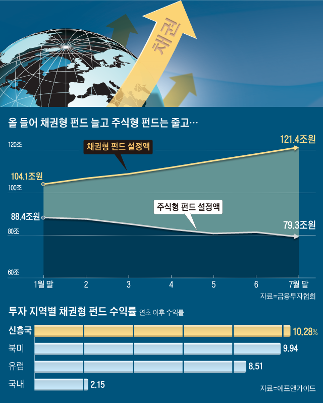 채권형 펀드 121조 20년만에 최대.. 신흥국 펀드 수익률 10.28%