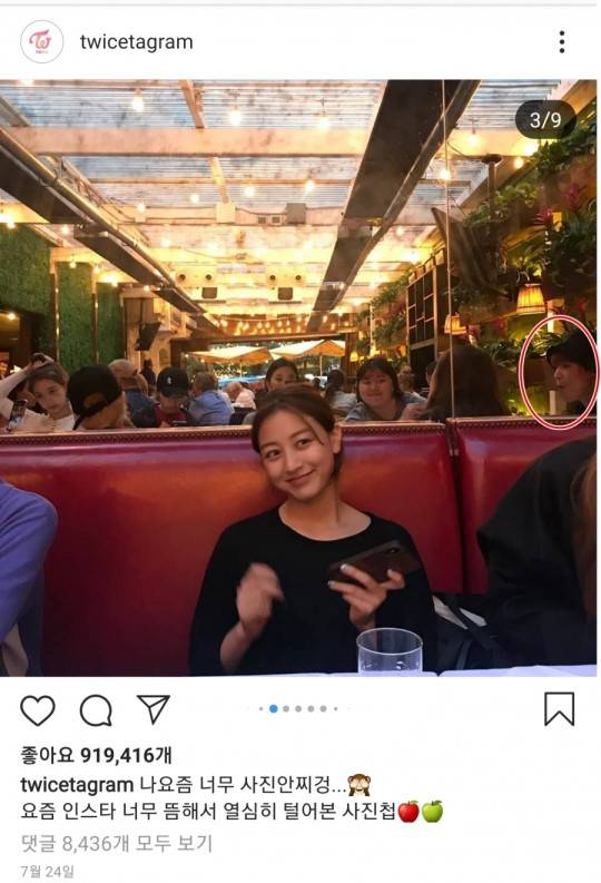 지난달 24일 트와이스 공식 인스타그램에는 지효가 팬들에게 근황을 전하는 게시물이 게재됐다. 그런데 해당 게시물에 강다니엘을 닮은 남성의 얼굴이 발견돼 팬들이 때아닌 '성지순례'를 하고 있다.