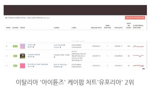 앞서 방탄소년단 정국의 유포리아가 이탈리아 '아이튠즈' K-팝 차트에서 2위를 한 소식도 함께 전해지며 미국 외dp 이탈리아에서의 넘사벽 인기도 입증했다.