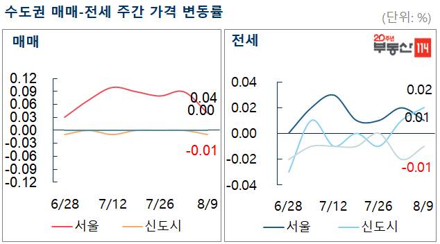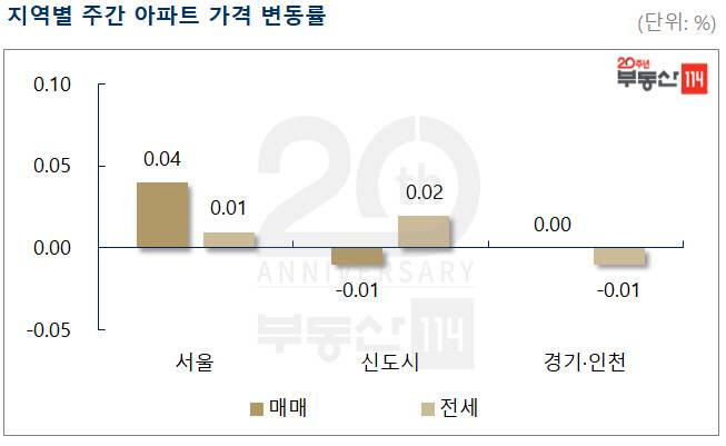 9일 부동산114에 따르면 이번주 서울 아파트 매매값은 전주보다 0.04% 상승했다.