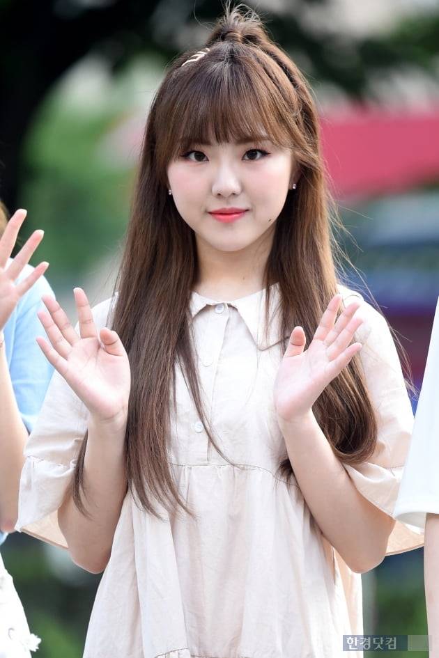 그룹 공원소녀 서경이 9일 오전 서울 여의도 KBS 신관 공개홀에서 열린 '뮤직뱅크' 리허설에 참석해 포토타임을 갖고 있다.