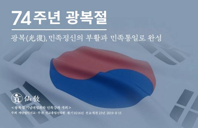 민족종교 선교종단 재단법인 선교(仙敎)는, 74주년 8.15 광복절을 맞아 선교총본산 선교총림 선림원 주관으로 기념대법회와 함께 취정원사의 민족강좌를 개최한다고 선교중앙종무원을 통해 밝혔다.