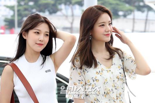 그룹 프로미스나인(fromis_9, 노지선, 송하영, 이새롬, 이채영, 이나경, 박지원, 이서연, 백지헌, 장규리) 백지헌, 장규리가 17일 오후 ‘KCON 2019 LA(케이콘 2019 LA)’ 참석차 인천국제공항을 통해 미국 로스앤젤레스로 출국하고 있다.