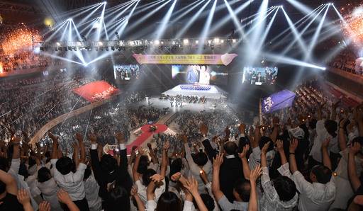 17일 경기 가평군 청심평화월드센터에서 세계평화통일가정연합(한국회장 이기성) 창시자 문선명 천지인 참부모 천주성화 7주년 기념 성화축제가 열리고 있다. 허정호 선임기자