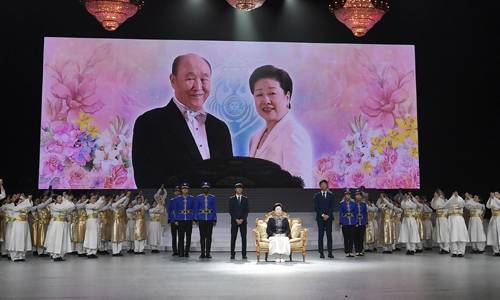 17일 경기도 가평군 설악면 청심평화월드센터에서 열린 문선명 천지인참부모 천주성화 7주년 기념 성화축제에서 한학자 총재가 입장하고 있다. 가평=허정호 선임기자