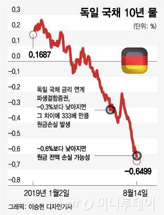이번에 문제가 된 상품은 독일 국채 10년물과 영국 CMS(파운드화 이자율 스와프) 금리 등을 기초자산으로 만든 DLS·DLF다.