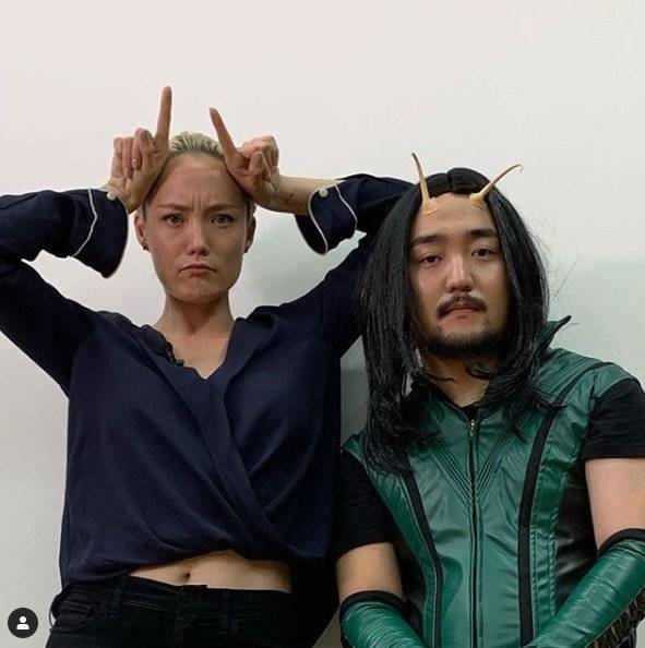 공개된 사진엔 할리우드 배우 폼 클레멘티에프와 함께한 유병재의 투샷이 담겨 있다. 마블 영화 '가디언즈 오브 갤럭시' 속 폼 클레멘티에프가 맡은 맨티스 분장을 한 유병재의 모습이 웃음을 안긴다.