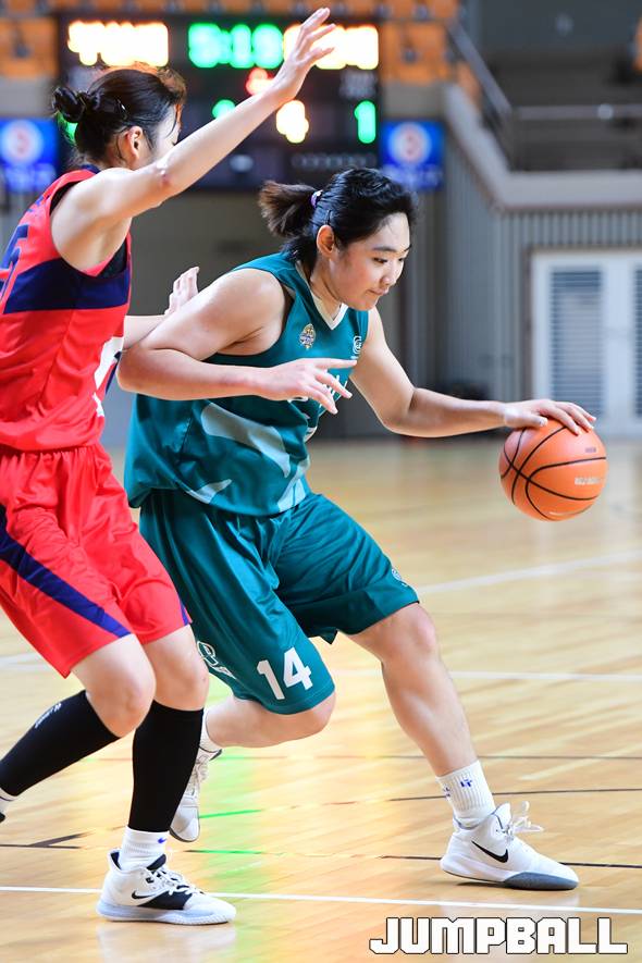 [점프볼=상주/박상혁 기자] 22일 상주실내체육관 신관에서 열린 '제35회 MBC배 전국대학농구 상주대회' 부산대와 용인대의 여자부 결승전 경기, 용인대 김해지가 골밑에서 공격을 시도하고 있다. 2019-08-22 박상혁(sea80288@naver.com)