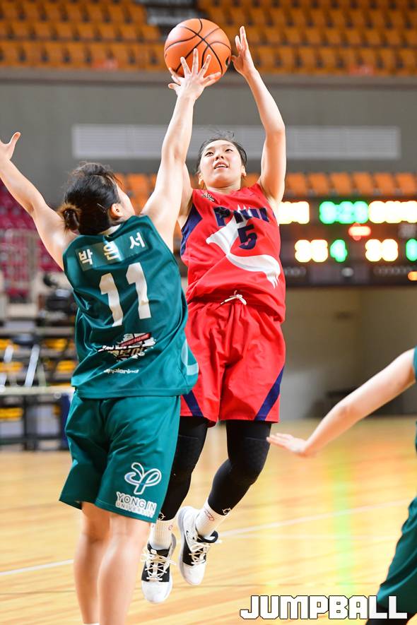[점프볼=상주/박상혁 기자] 22일 상주실내체육관 신관에서 열린 '제35회 MBC배 전국대학농구 상주대회' 부산대와 용인대의 여자부 결승전 경기, 부산대 박인아 수비를 앞에두고 슛을 시도하고 있다. 2019-08-22 박상혁(sea80288@naver.com)