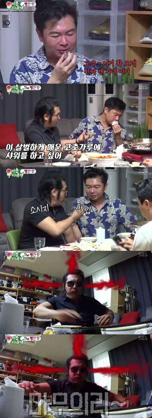 본격 마라탕 먹방을 시작했다. 세 사람은 매운맛에 흠뻑 빠져들었다. 하지만 점점 매운 맛에 얼굴들이 빨갛게 달아올렸다. 이상민은 "안 매우시냐"고 하자, 김보성은 "안 맵다"고 했다. 이에 이상민은 사천고추에 고스트 페퍼까지 넣어 매운맛을 더욱 가열시켰다. 김보성은 "매운맛과 의리"를 외치면서 "이제 좀 약간 매운 맛"이라며 허세를 놓지 않아 웃음을 안겼다.
