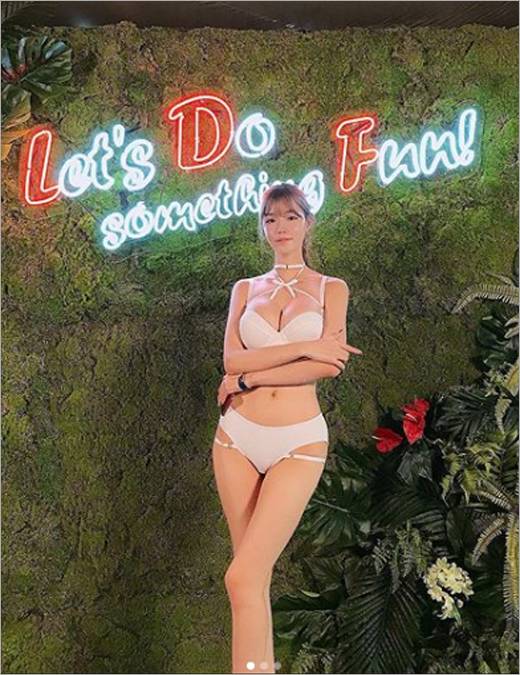 공개된 사진 속 민한나는 끈으로 장식된 화이트 비키니를 입고 순정만화 같은 미모에 키 175cm, 75E컵의 바비인형 몸매를 뽐냈다.
