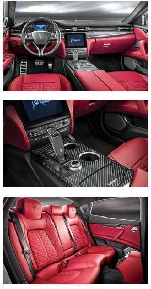 외관 색깔도 다양해졌다. 강렬한 붉은색인 로소 포텐테와 진한 파란색인 블루 노빌레가 새로 추가됐다. 콰트로포르테의 유려한 보디 라인을 더욱 돋보이게 만들어주는 색깔이라고 회사는 설명했다. 내부 인테리어는 한층 고급스럽고 안락해졌다는 평가다. 콰트로포르테는 크게 ‘그란루소’와 ‘그란스포트’ 두 가지 트림(세부 모델)으로 나뉜다. 고급스러움에 방점을 둔 그란루소 내부는 에르메네질도 제냐의 멀버리 실크로 우아함을 더한 인테리어와 라디카 우드 트림의 대시보드, 가죽으로 고급스럽게 마감된 스티어링 휠을 갖췄다. 스포티함을 강조한 그란스포트 트림은 열두 개 방향으로 조정되는 스포츠 시트와 알루미늄 기어시프트 패들, 이녹스 스포츠 풋 페달이 장착됐다. 여기에 고광택 블랙 피아노 우드 트림을 적용해 역동적인 모습을 강조했다.
