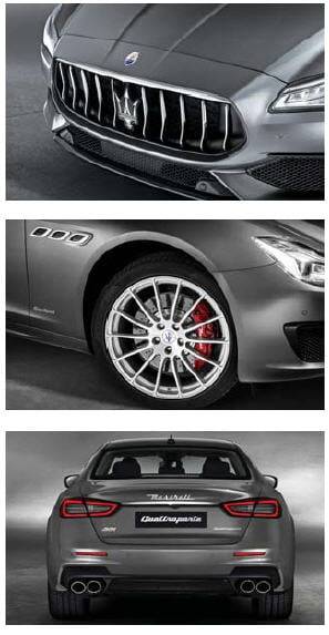 은빛 크롬바로 제작한 라디에이터 그릴과 상어의 코를 닮은 전면부는 콰트로포르테의 상징이다. 2019년식 모델은 이전보다 더욱 역동적이고 강렬한 인상을 준다는 분석이다. 겉모습뿐만 아니라 기능적인 측면에도 각별히 신경썼다. 전면 그릴에는 에어셔터가 장착됐다. 엔진룸으로 들어오는 공기의 흐름을 조절해 공기 역학적인 효율성을 극대화하고 엔진 온도를 최적으로 유지한다. 이 덕분에 공기저항계수가 0.28로 낮아져 고속 주행에 최적화됐다.