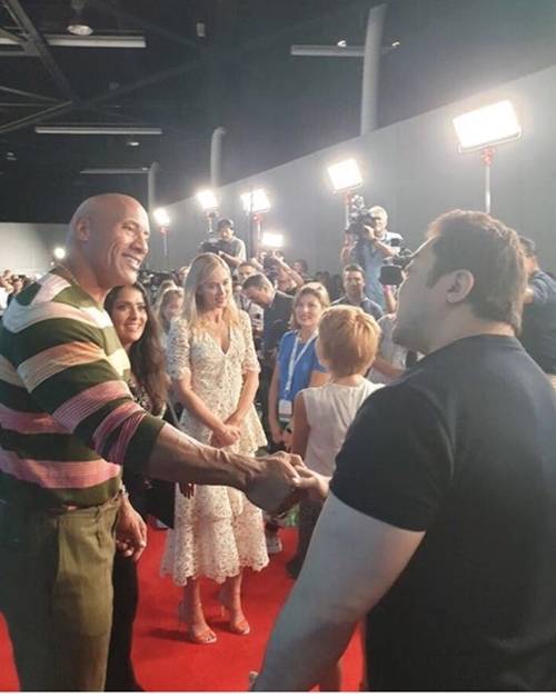 드웨인 존슨은 이날 디즈니의 신작 ‘정글 크루즈’ 행사에 참석해 마동석을 만났다.