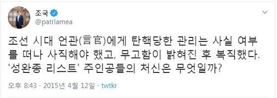 의혹 때마다 네티즌이 찾아낸다..조국의 낯뜨거운 '조국 트윗'
