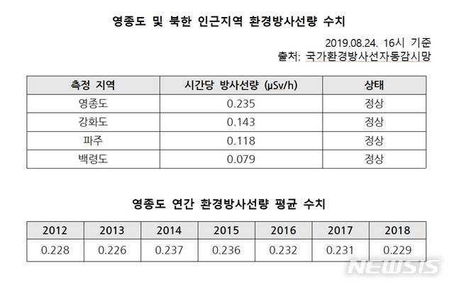 실제로 영종도보다 북한에 더 가까운 강화도, 파주, 백령도의 경우 방사선수치가 각각 0.143, 0.118, 0.079마이크로시버트로 훨씬 낮은 편이다.