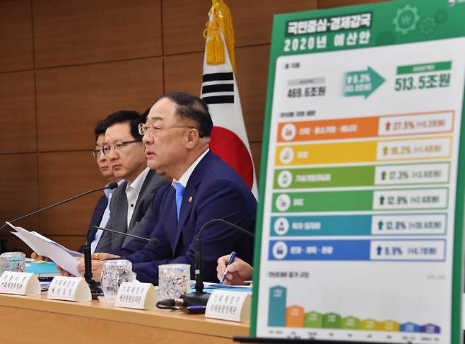 홍남기 부총리 겸 기획재정부 장관이 8월 27일 세종정부청사에서 열린 '2020년 예산안' 상세브리핑에서 모두발언을 하고 있다.