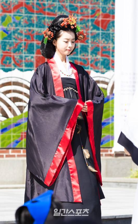 이날 임나영은 고조선 왕비 한복을 입고 단아하고 아름다운 미모를 발산했다.