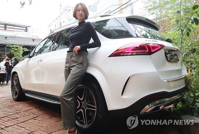 (서울=연합뉴스) 이재희 기자 = 3일 오전 서울 성동구 GLE하우스에서 모델이 메르세데스 벤츠의 4세대 완전변경 모델 '더 뉴 GLE'와 포즈를 취하고 있다. 메르세데스 벤츠 코리아는 직렬 6기통 가솔린 엔진을 장착한 '더 뉴 GLE 450 4MATIC'과 4기통 디젤 엔진의 '더 뉴 GLE 300 d 4MATIC' 두 모델을 판매한다. 2019.9.3