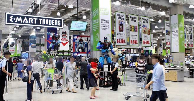 특히 트레이더스는 17호점 매장 오픈에 맞춰 ‘로봇 태권V 로드쇼’를 선보인다. 엄마·아빠에겐 어린 시절 향수를, 아이에겐 새로운 볼거리를 제공하는 레트로(복고) 주제 기획전이다. 오는 22일까지 행사 기간 3.5m 크기의 대형 태권V 조형물을 전시할 계획이다.