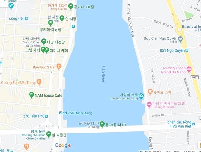다낭에는 서울을 가로지르며 시민들의 휴식처가 되는 '한강'과 똑같은 이름의 한강(Han River)이 있다. 한강은 다낭 시내를 지나 다낭만까지 8km어 걸쳐 뻗어 있으며, 이 한강을 따라 카페와 바들이 줄지어 들어서 있고, 주말이면 한강을 따라 거리 공연이 이어져 한강의 밤 낭만을 즐기기에 좋다.