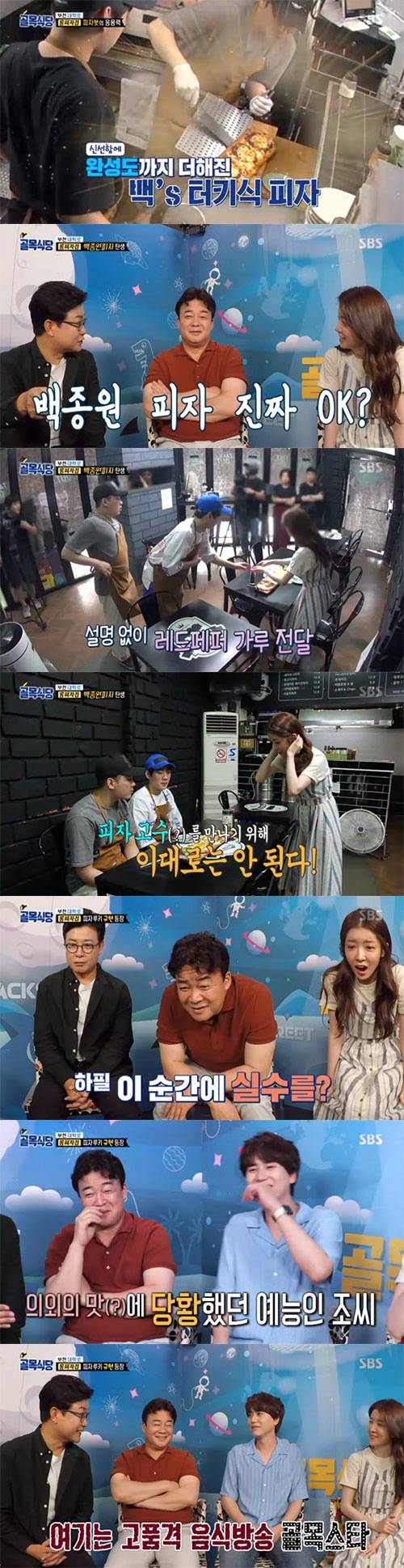 첫 피자가 나왔고 규현은 "사진을 찍어도 되냐"고 물었다. 이때 첫 번째 실수가 발견됐다. 달걀의 흰자가 흘러 내린 것. 또 매운 맛을 처음으로 서빙을 하자 백종원은 "순한맛을 나중에 먹으면 맛이 반감 된다"고 걱정했다.