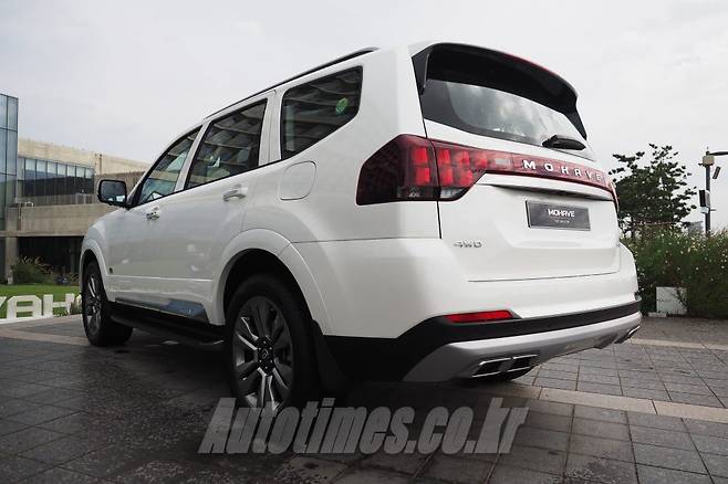 신형 모하비는 전장 4,930㎜, 전폭 1,920㎜, 전고 1,790㎜(루프랙 제외시 1,765㎜), 휠베이스 2,895㎜의 차체 크기를 기반으로 굵은 캐릭터라인을 추가해 듬직한 이미지를 표현했다. 존재감을 드러내는 넓은 라디에이터 그릴을 비롯해 세로 형태의 주간주행등과 풀LED 헤드램프는 정교함을 더했다. 새 20인치 휠을 비롯해 리어램프는 앞모습과 통일감 있는 디자인으로 마무리 했고 듀얼 트윈팁 데코 가니쉬와 레터타입 엠블럼을 적용해 고급스러운 분위기를 연출했다.