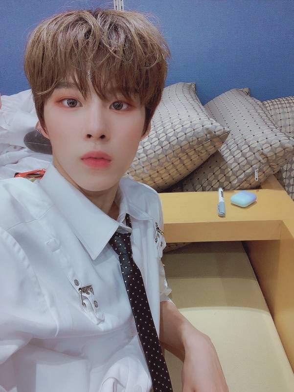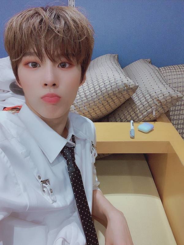 김우석은 9월 5일 엑스원 멤버 공식 트위터에 "생방 시작 전"이라는 글과 함께 사진을 게재했다.