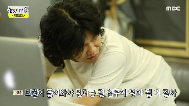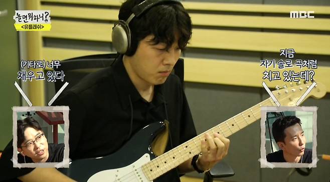 MBC <놀면 뭐하니?>에서 유희열, 윤상에 이어 배턴을 이어받은 이상순과 기타리스트 겸 싱어송라이터 적재는 아직까진 앙상한 음원에 각기 어쿠스틱 기타와 일렉 기타의 선율을 덧입혔다. 먼저 연주를 시작한 이상순은 어쿠스틱 기타의 따뜻한 질감으로 차분히 채색을 시작했다. 그제야 그가 인심좋은 '(효리네) 민박집 사장님'이 아니라 음악가였다는 사실이 새삼 떠올랐다.