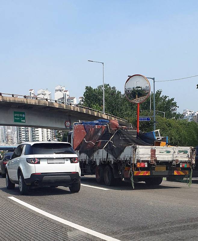 운전을 하다 보면 옆에 지나가기 무서울 정도로 짐을 실은 화물차를 종종 보곤 합니다. 트럭에 실린 반사경이 왠지 위태로워 보였습니다. 전방 고가에 부딪히진 않을까 염려도 됩니다. 인간의 편의를 위해 만든 차, 안전이 제일입니다.
