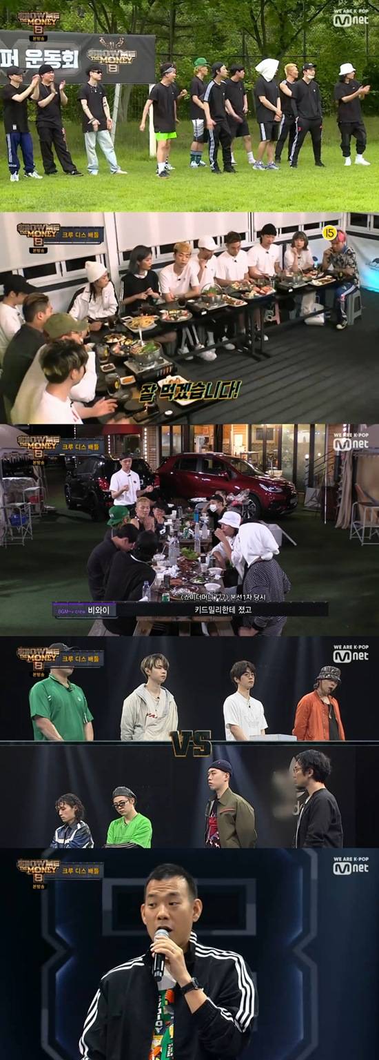 6일 방송된 Mnet '쇼미더머니8'(Show Me The Money 8)에서 프로듀서와 래퍼들이 모두 한자리에 모였다. 쇼미더머니 최초로 체육대회가 열린 것. 특별 MC인 딘딘과 보이비는 "'쇼미더머니' 미션은 아무것도 안 걸고 하잖나. 각 라운드별 베네핏은 크루 디스 배틀 그룹별 선, 후공 결정권이다"라고 말해 모두를 술렁이게 했다.