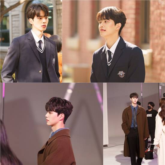 먼저 촬영 현장 속 교복을 입고 있는 송강은 新 만찢남(만화를 찢고 나온 남자)이라는 수식어에 걸맞게 웹툰 원작 속 선오 그 자체로 변신했다.