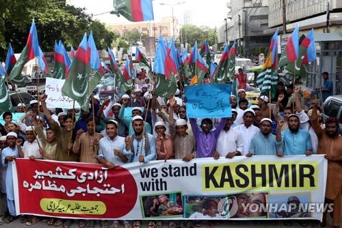 epa07825299 Supporters of a religious students group 'Jamiat Talba Arbia' shout anti-India slogans during a protest in Karachi, Pakistan, 07 September 2019. Tensions are high in the region after the Indian government on 05 August pushed a resolution through parliament that removes the special constitutional status granted to the disputed Kashmir region, a decision condemned by Pakistan. Kashmir has been a matter of dispute between India and Pakistan since 1947 when both countries became sovereign states. EPA/REHAN KHAN