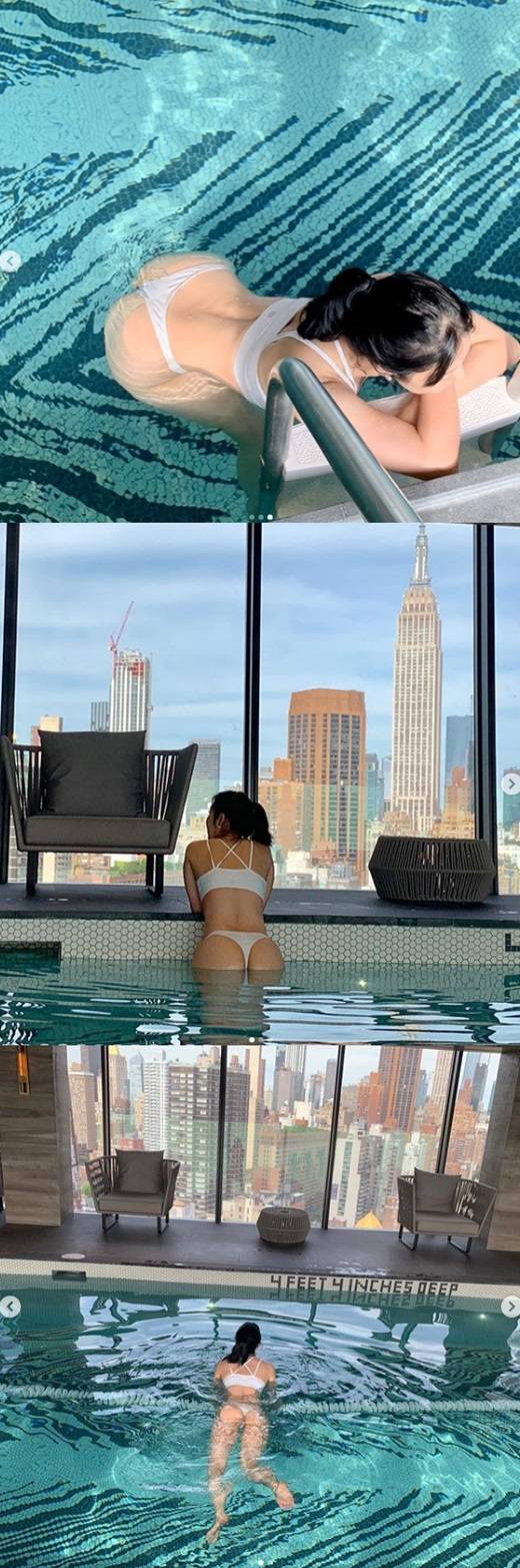 공개된 사진 속 사유리는 미국 맨하탄에서 여유로운 시간을 보내고 있다. 화이트 비키니를 입고 탄탄한 뒷태를 노출해 눈길을 끌고 있다.