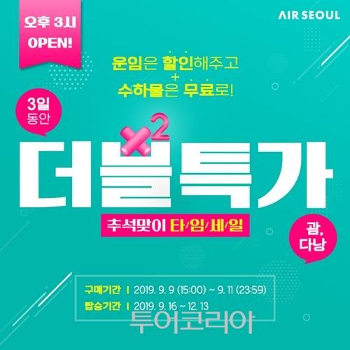 에어서울이 오늘(9일)부터 오후 3시부터 11일까지 3일간 다낭 및 괌 노선에서 특가 및 무료 수하물 서비스 이벤트를 실시한다.