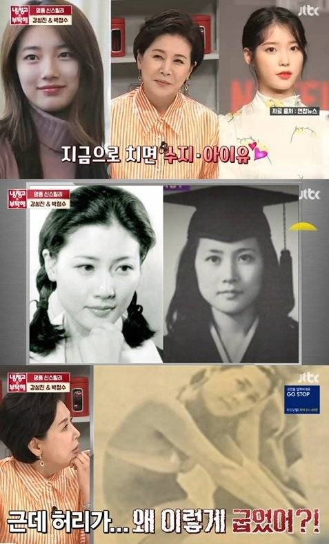 이날 MC 김성주는 "박정수 씨가 지금은 '악덕 시어머니'로 불리지만 왕년엔 수지·아이유에 버금가는 '청춘스타'로 불렸다"며 박정수의 과거 사진을 공개했다. 사진에는 대학교 2학년, 졸업 사진 등 박정수의 20대 시절이 담겨 있었다. 단아하면서도 청순한 미모에 셰프군단과 MC들은 "엄청 미인"이라며 감탄했다.