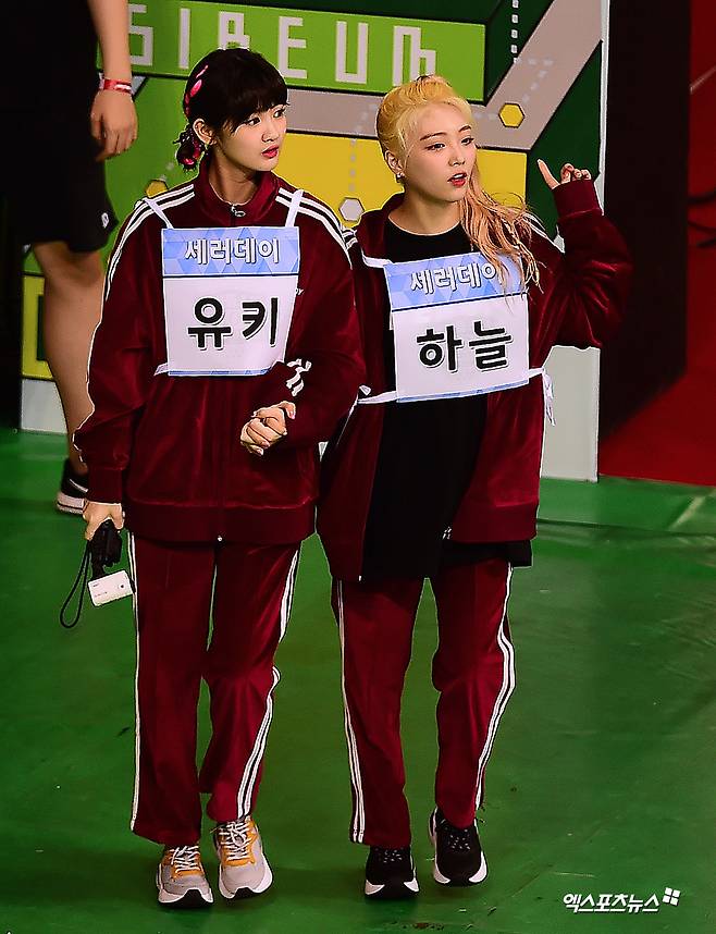 [엑스포츠뉴스 김한준 기자] 경기도 고양실내체육관에서 진행된 MBC '2019 추석특집 아이돌스타 선수권대회'에 참석한 세러데이 유키, 하늘이 녹화에 임하고 있다.