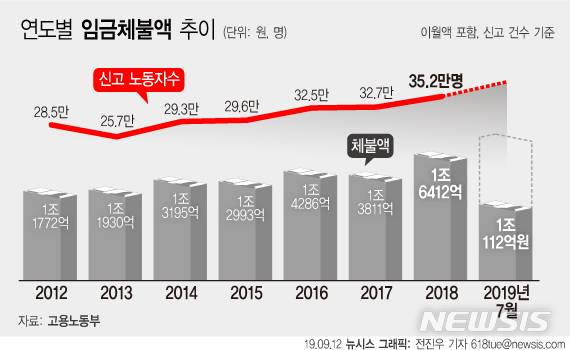 【서울=뉴시스】강세훈 기자 = 일을 하고도 임금을 받지 못한 노동자들에겐 추석 연휴가 오히려 고통이다. 이런 고통을 겪는 사람 숫자가 상상을 초월한다. 우리나라 임금체불액은 경제규모가 3배 큰 일본에 비해 10배가 넘는다.
