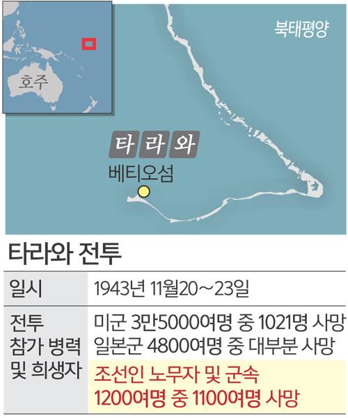 일본 또한 타라와 전투를 잊지 않고 있었다. 일본은 1980년대 베티오섬과 바로 옆 바이리키(Bairiki)섬을 잇는 방죽길을 건설했다. 만조 때마다 섬이 되던 베티오섬은 일본의 도움 덕분에 차로도 닿을 수 있는 섬이 됐다. 시바자키 소장이 본부로 사용했던 벙커는 일본 기업의 지원을 받은 교회가 따로 관리하고 있었다. 타라와 전투에서 숨진 일본 장병의 유가족들이 1년에 2∼3차례 단체로 베티오섬을 찾아 추모하는 것으로 알려져 있다. 반면 타라와 전투에서 조선인이 끌려와 숨진 사실을 기억하는 사람은 베티오섬의 유일한 관광 가이드인 브라운씨를 제외하고는 아무도 없었다.