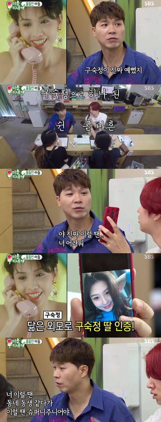 두 사람은 갑자기 '의천도령기' 얘기를 시작으로 중국배우에 대해 말이 통했다. 특히 '구숙정'이 최고 예쁘다며 공통취향으로 하나 된 두 사람이었다. 이때, 김희철은 "나 구숙정 누나랑 친하다"고 했고, 박수홍은 믿지 못했다. 김희철은 구숙정 딸 사진을 보여주며 SNS로 연락하는 사이라고 했고, 닮은꼴 외모로 딸을 인증, 박수홍은 "이럴 땐 너 어려워, 이럴 땐 슈퍼주니어다"고 말해 폭소하게 했다. 네일숍에서 구숙정 인맥으로 우주대스타 인증해 방송에 재미를 더했다. /ssu0818@osen.co.kr
