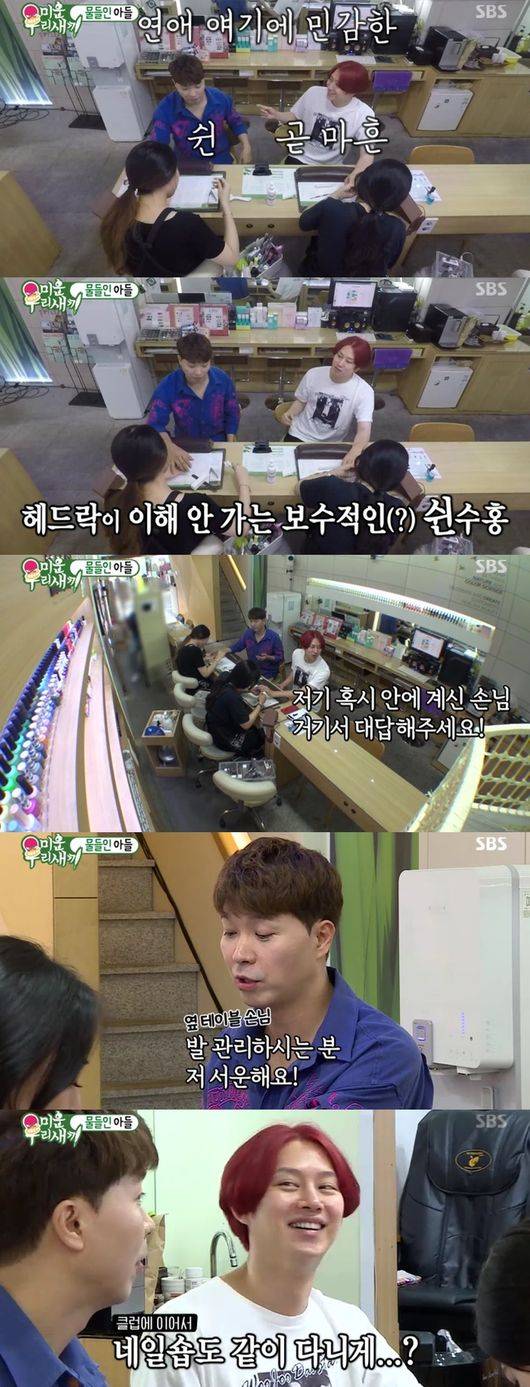이어 김희철은 박수홍과 함께 네일숍으로 향했다. 서장훈은 참고로 나도 네일숍을 좀 다닌다, 키가 크기 때문에 발톱깎기가 힘들기 때문"이라며 이유를 전했다. 지인들이 추천해 네일숍을 가게된 일화를 전했다.