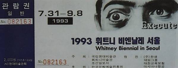 | ▲ 1993 휘트니비엔날레 서울 관람권 김달진 미술자료 박물관 |