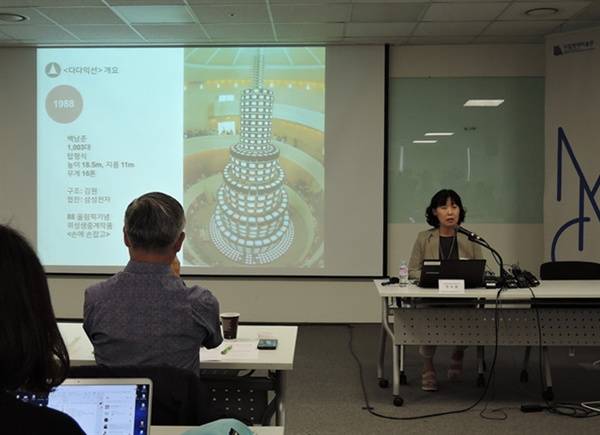 | ▲ 지난 9월 11일 '다다익선' 복원 관련 국립현대미술관 기자간담회, 발표하는 박미화 학예연구관. |