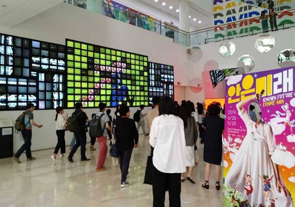 | ▲ 서울시립미술관 서울 이야기를 자유로운 영상으로 푼 백남준의 '서울 랩소디(LCD 280개, 2001년) 화면이 밝다. |