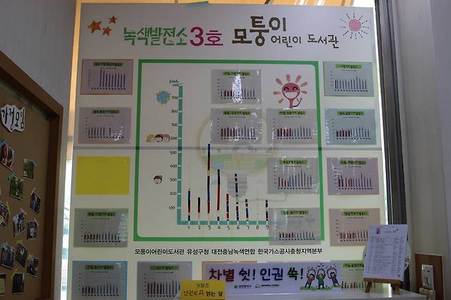 | ▲ 모퉁이어린이도서관 녹색절전소 모임 '반디네'. 매달 그달 전기사용량을 그래프로 만든다. |