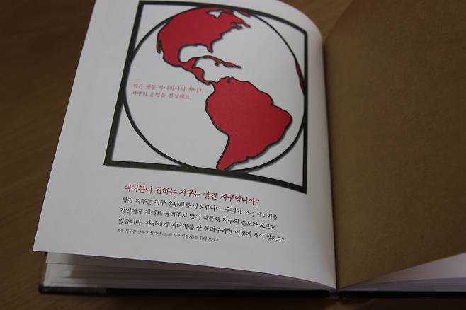 | ▲ 작은 행동 하나하나의 차이가 지구의 운명을 결정해요. 여러분이 원하는 지구는 빨간 지구입니까? |