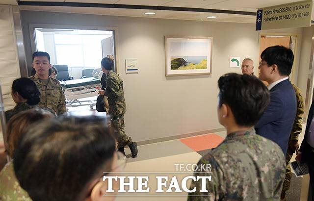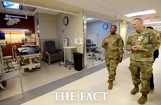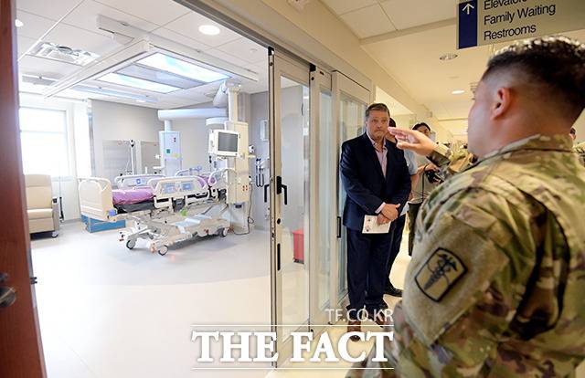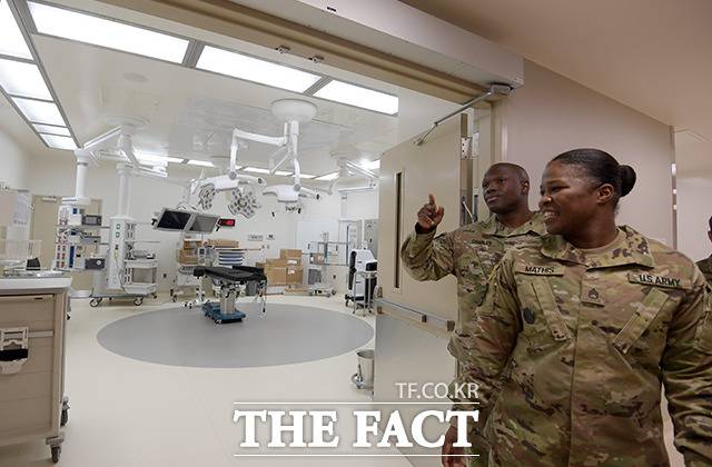[더팩트|평택=이선화 기자] 20일 오전 경기도 평택 주한미군기지 캠프 험프리스에서 '브라이언 D. 올굿 육군 병원과 외래진료 센터' 개원식이 열린 가운데 미8군 64의무 여단 관계자들이 병원을 소개하고 있다.