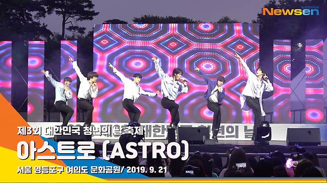 아스트로 (ASTRO) 멤버 차은우, 문빈, MJ, 진진, 라키, 윤산하가 9월 21일 오후 서울 영등포구 여의도 문화공원에서 열린 '제3회 대한민국 청년의 날' 축제에 참석 해 멋진 무대를 펼치고 있다.