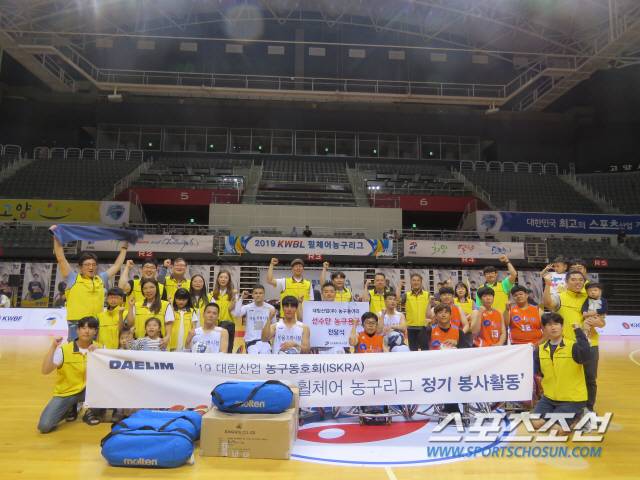 유 회장을 비롯한 26명의 '이스크라' 회원 및 가족들은 21일 오후 고양체육관에서 개막한 휠체어농구리그 고양홀트-대구시청, 서울시청-제주자치도의 경기를 현장에서 지켜보며 뜨거운 응원을 보냈다. 노란 조끼를 맞춰 입은 응원단은 선수들의 짜릿한 골이 터질 때마다 환호성을 내질렀다. '이스크라'는 1995년 처음 발족해 25년째 활동중인 대림산업의 대표적인 사내 스포츠 동아리다. 2007년 서울 YMCA 직장인농구대회 3위, 2014년 건설인 농구대회 2위 등 꾸준한 성적을 내온 '이스크라'는 현재 70명의 회원들이 틈나는 대로 농구 훈련과 친선경기를 병행하고 있다.