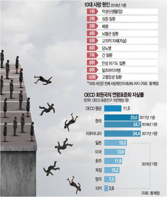 - '매일 평균 37.5명 자살' OECD회원국 1위..10~30대 사망원인 1위